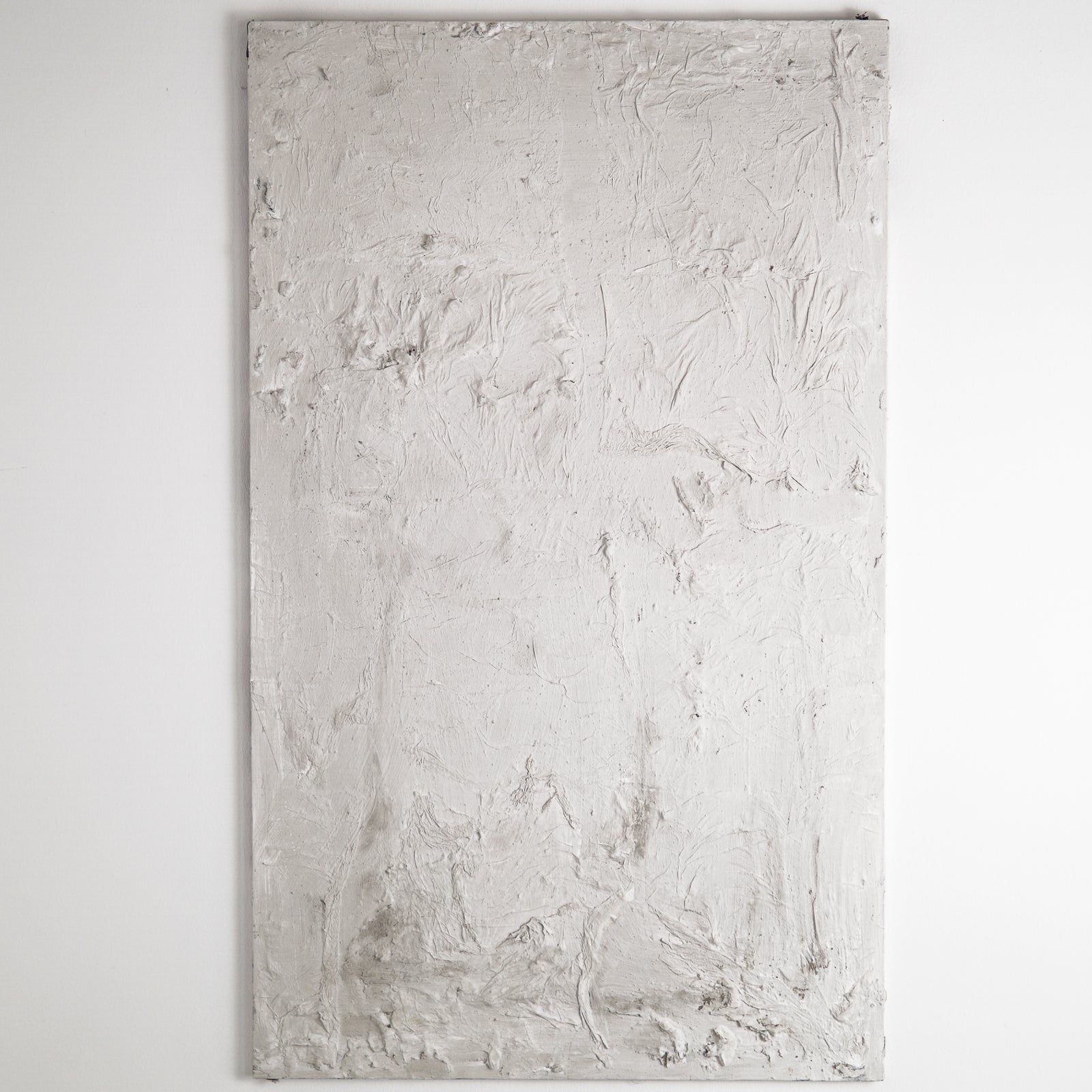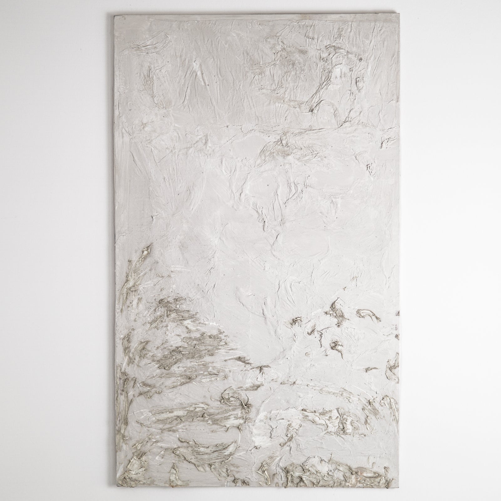 Ana Moraes | sem título VI, 2021 | 110x70 cm | Tinta spray, cimento, silicone e papel sobre tela