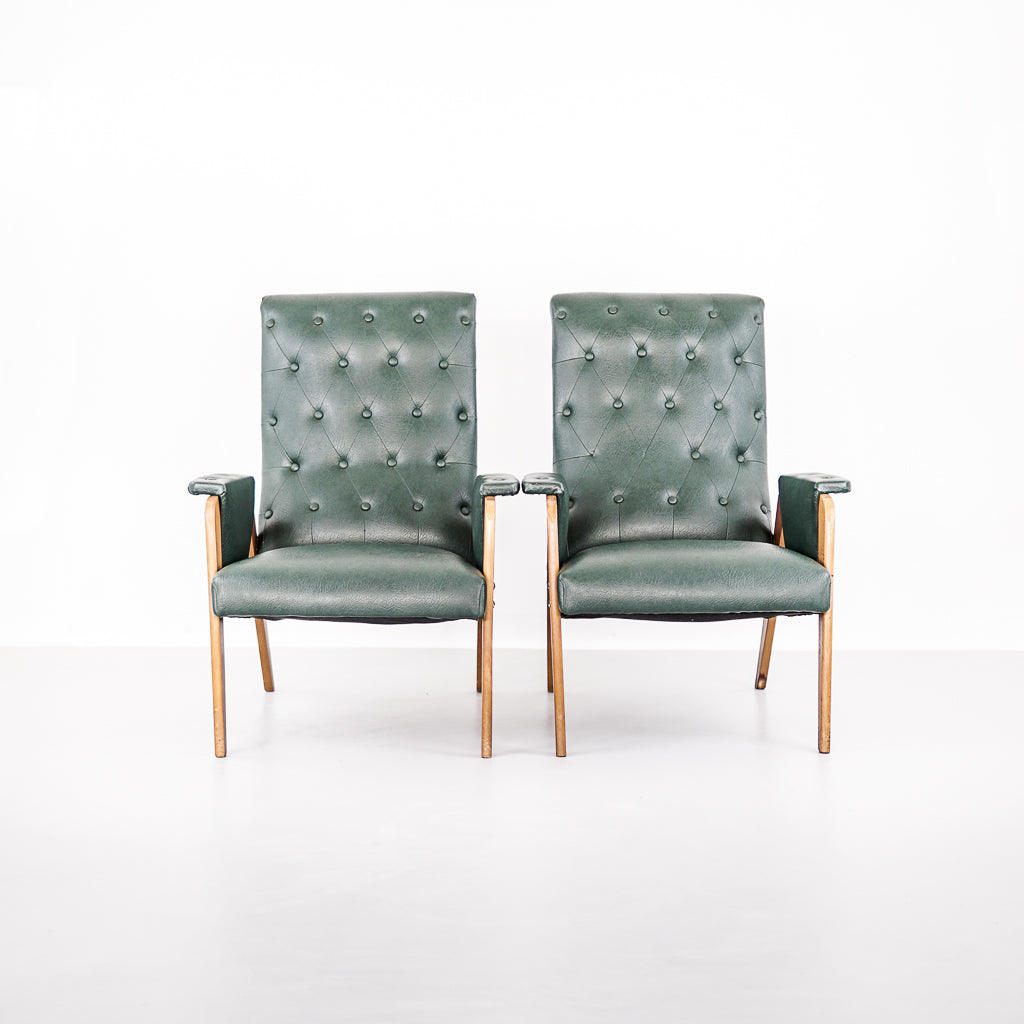 Sold OutMid-Century Wood and Leatherette Armchair | Netherlands | 1970s