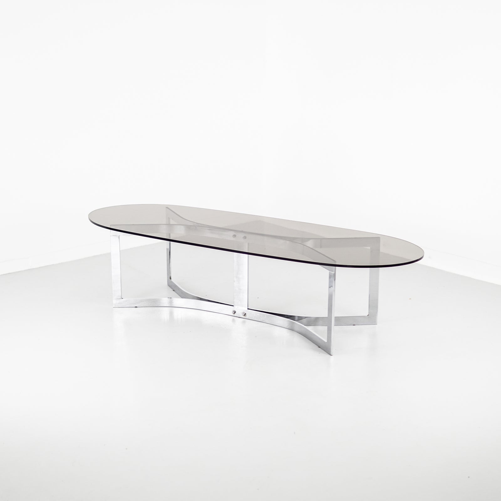 Smoked Glass Coffee Table With Angular Chromed Metal Legs | Netherlands | 1970's